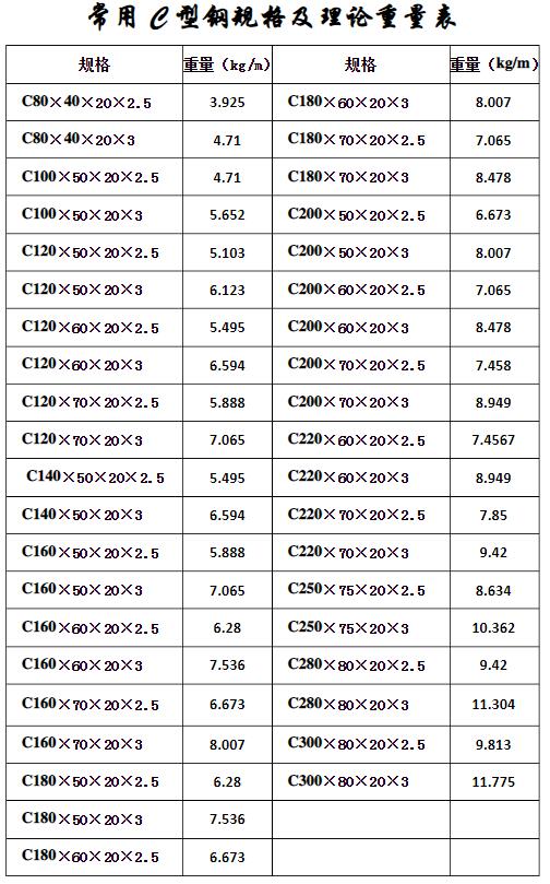 c型鋼規(guī)格重量表有哪些數(shù)據(jù),可以了解一下