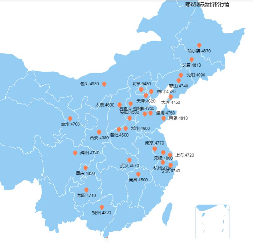 目前全國主要城市螺紋鋼價格依舊維持在高位,上海市螺紋鋼的價格為4700元一噸,中部城市鄭州市螺紋鋼價格為4600元一噸,山西太原為4600元一噸,北京市為5400元一噸。主要是因為原材料價格上漲等原因使螺紋鋼價格在高位浮動。