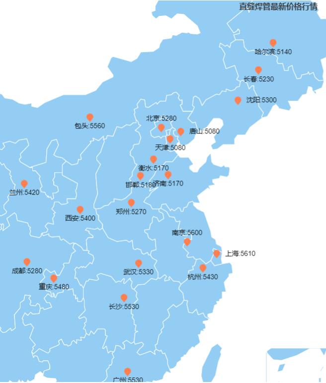 全國主要城市直縫焊管最新價格圖表 admin888 | 全國主要城市直縫焊管最新價格保持平穩(wěn),最低價格城市是天津與唐山的5080元一噸,最高價格城市是上海5610元一噸,以下就是全國主要城市直縫焊管最新價格圖表。