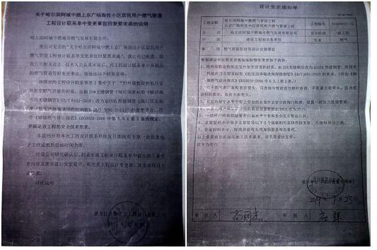 王義隨后向中國房地產(chǎn)報(bào)記者提供了由設(shè)計(jì)單位提供一份關(guān)于“工程設(shè)計(jì)聯(lián)系單”的說明和“設(shè)計(jì)變更通知單”,兩份文件均蓋有設(shè)計(jì)公司公章,表明設(shè)計(jì)公司對管材變更已經(jīng)認(rèn)可,但日期分別標(biāo)注7月22日和7月23日,這意味著,從5月份開始進(jìn)場到7月份,大概2個(gè)多月時(shí)間里,在沒有取得設(shè)計(jì)公司的同意前,阿城中燃私自采用了成本更低的“焊接鋼管”,一直到工程已覆蓋了上萬戶居民后才得到設(shè)計(jì)公司的書面確認(rèn)!冻擎(zhèn)燃?xì)馐覂?nèi)工程施工與質(zhì)量驗(yàn)收規(guī)范》中明確規(guī)定,城鎮(zhèn)燃?xì)馐覂?nèi)工程施工應(yīng)按已審定的設(shè)計(jì)文件實(shí)施,當(dāng)需要修改設(shè)計(jì)或材料代用時(shí),應(yīng)經(jīng)原設(shè)計(jì)單位同意。對此,王義承認(rèn)“工作中存在一定失誤”,王義同時(shí)表示,更換后的焊接鋼管也可以完全滿足使用需要,此舉屬于“降本增效”,“企業(yè)這么大面積的施工也要計(jì)算成本。”