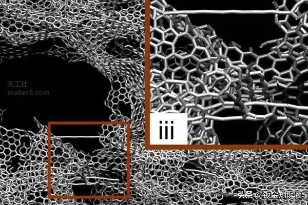 碳原子之間相互連接成六角網(wǎng)格。鉛筆里用的石墨就相當(dāng)于無(wú)數(shù)層石墨烯疊在一起,而碳納米管就是石墨烯卷成了筒狀。
