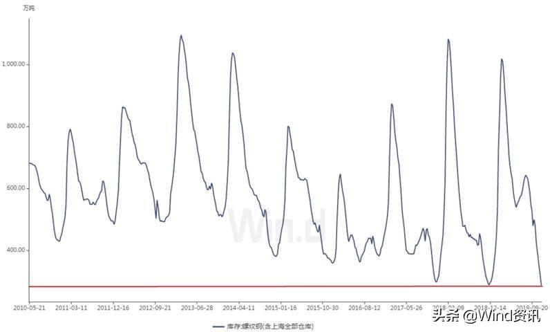 2、螺紋鋼庫(kù)存方面,最新一期螺紋鋼庫(kù)存報(bào)287.08萬(wàn)噸,連續(xù)7期下滑,年內(nèi)首次跌破300萬(wàn)噸關(guān)口,并創(chuàng)有記錄以來(lái)歷史新低。