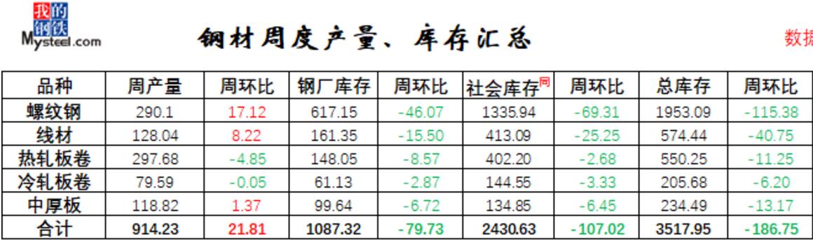 這可以得出一個明顯的結(jié)論:因?yàn)橹芟M(fèi)量大于周產(chǎn)量,所以庫存還在繼續(xù)降低,并且表現(xiàn)為社會庫存的降低。