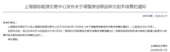 3月17日,上期所及其子公司發(fā)布通知,將所有期貨品種交割手續(xù)費標(biāo)準(zhǔn)在規(guī)定期限內(nèi)調(diào)整為0。