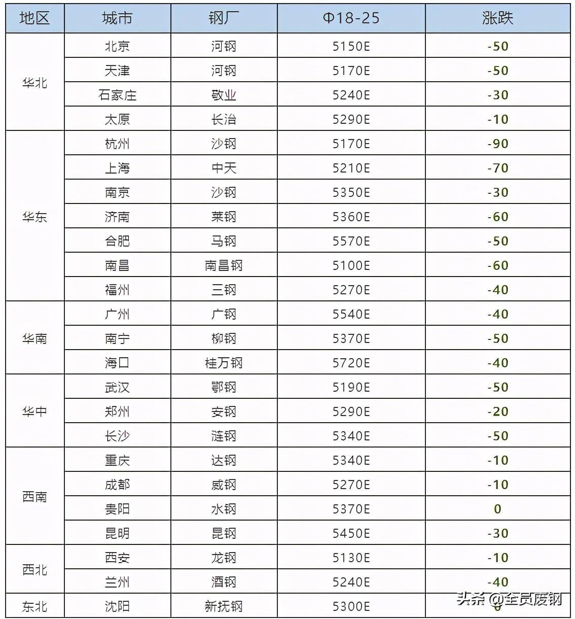 截至16:30,主要省會(huì)城市螺紋鋼一線資源報(bào)價(jià)如下所示: