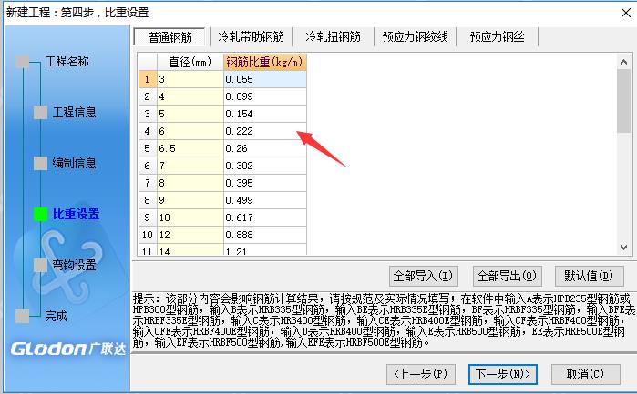因為市場上6.5鋼筋規(guī)格取消了,在這一覽需要將直徑6鋼筋比重調(diào)成0.26.