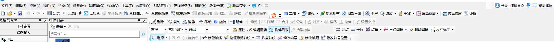 進(jìn)入繪圖界面:最左側(cè)為構(gòu)件列表。