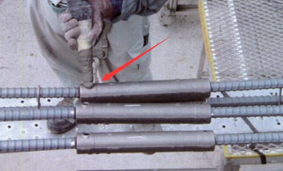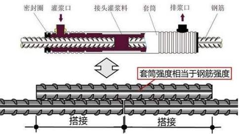 在裝配式建筑中此法鋼筋連接應(yīng)用較多。套筒灌漿連接是將帶肋鋼筋插入內(nèi)腔帶溝槽的鋼筋套筒,然后灌入專用高強(qiáng)、無(wú)收縮灌漿料,達(dá)到高于鋼筋母材強(qiáng)度連接效果。在裝配式混凝土建筑中,預(yù)制豎向構(gòu)件(剪力墻結(jié)構(gòu)中的預(yù)制剪力墻、框架結(jié)構(gòu)中的預(yù)制柱、預(yù)制梁)連接通常采用鋼筋套筒灌漿連接;常用套筒灌漿連接形式有半灌漿和全灌漿兩種。