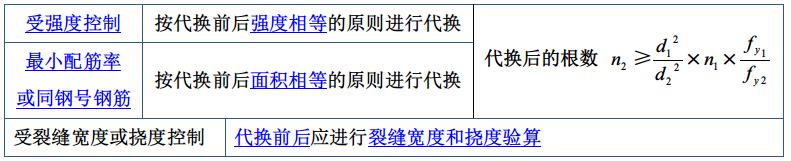 (2)鋼筋代換時,應征得設計單位的同意,并辦理相應手續(xù)。鋼筋代換除應滿足設計要求的構(gòu)件承載力、最大力下的總伸長率、裂縫寬度驗算以及抗震規(guī)定外,還應滿足最小配筋率、鋼筋間距、保護層厚度、鋼筋錨固長度、接頭面積百分率及搭接長度等構(gòu)造要求【2020-22、2017-8】