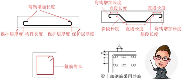 注意:彎鉤增加長度180°取(6.25d);彎曲調(diào)整值90°取(2.0d),45°取(0.5d)