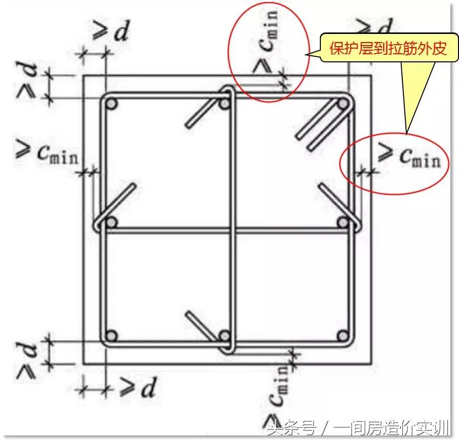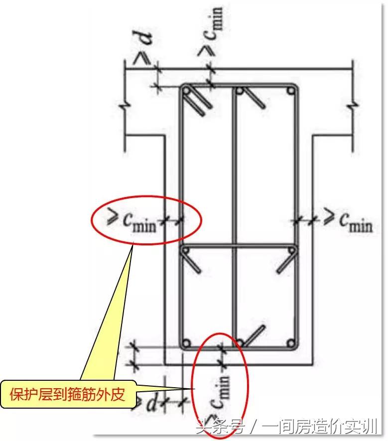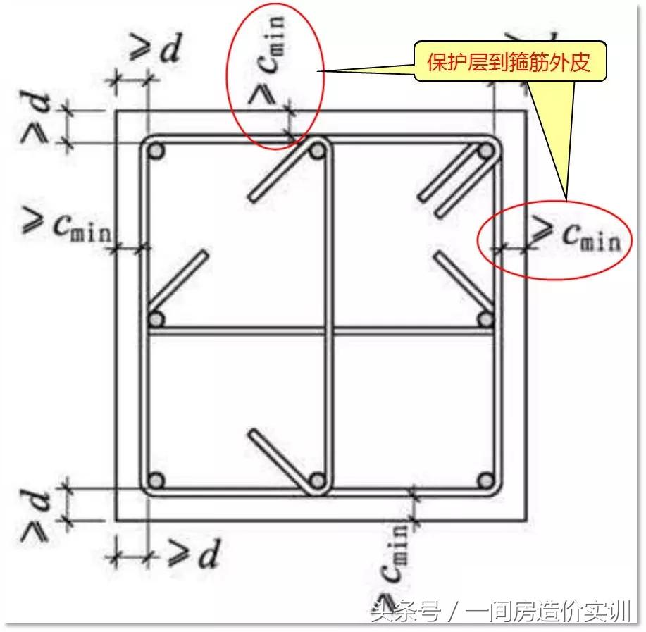 圖4情況很多人誤解保護層是到箍筋外皮,這就不符合規(guī)范的規(guī)定了,規(guī)范規(guī)定是最外側(cè)鋼筋外皮到構(gòu)件表面的距離。