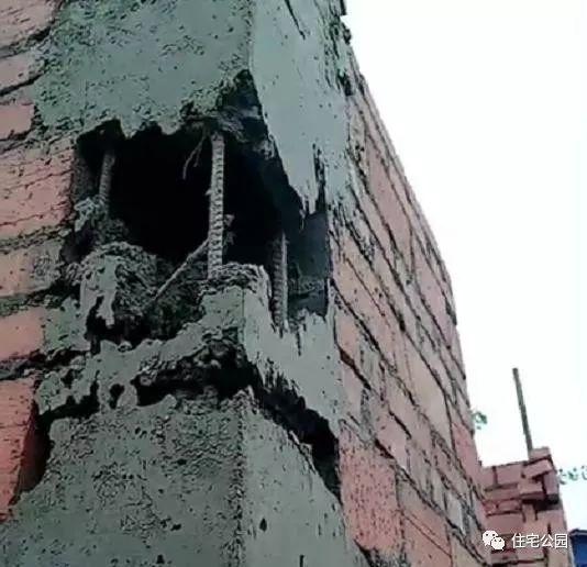 比如圖上這位網(wǎng)友家的房子,拆模之后的混凝土構(gòu)件出現(xiàn)了非常嚴(yán)重的“爛根”現(xiàn)象,也就是在墻柱等底部出現(xiàn)混凝土不密實(shí)、蜂窩、孔洞、露筋等現(xiàn)象。嚴(yán)重影響到了結(jié)構(gòu)的受力和抗震性能,造成房屋安全隱患。