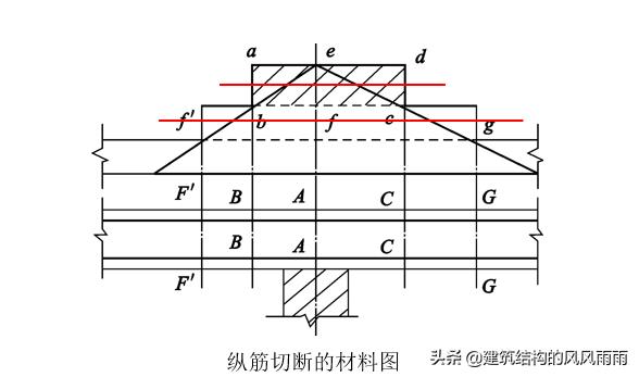 所謂正截面受彎承載力圖,是以各截面實際配置的縱向受力鋼筋所能承受的彎矩設計值為縱坐標,以相應的截面位置為橫坐標,所作出的彎矩圖。它反映了沿梁長度方向各正截面的彎曲抗力,故亦稱為抵抗彎矩圖(材料圖)。