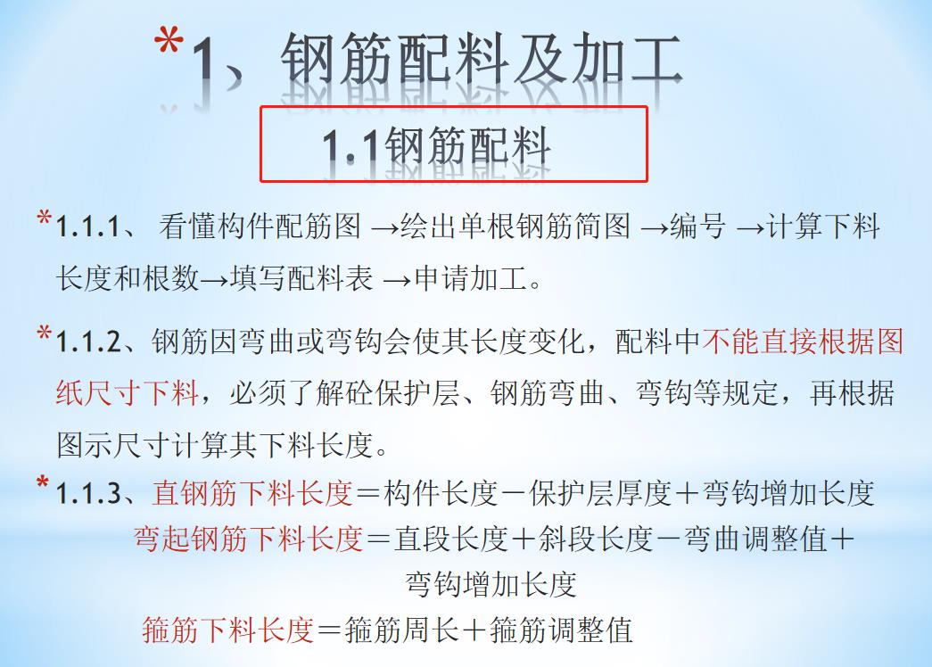 1、鋼筋配料及加工