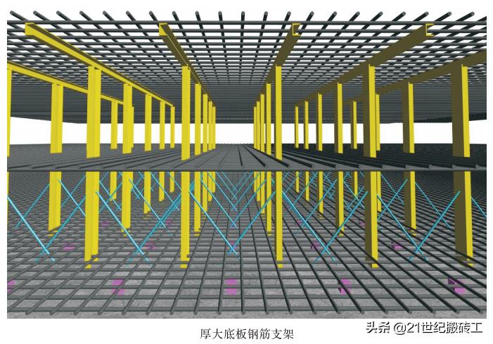 1.厚大底板鋼筋施工前必須編制專項施工方案,需明確鋼筋支架和馬鐙的材質(zhì)、尺寸、制作方式、支撐方式、布置間距以及加固措施。