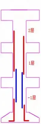地下室:-1層縱筋長度=-1層層高-1層非連接區(qū)Hn/3+1層非連接區(qū)Hn/3+搭接長度LlE;