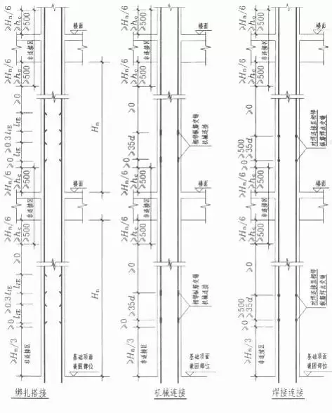 基礎(chǔ)插筋的計(jì)算公式:長度=彎折長度a+錨固豎直長度+非連接區(qū)Hn/3+搭接長度Lle