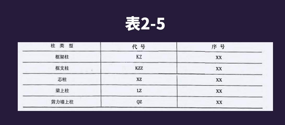 柱編號由類型代號和序號組成,應(yīng)符合表2-5的規(guī)定。