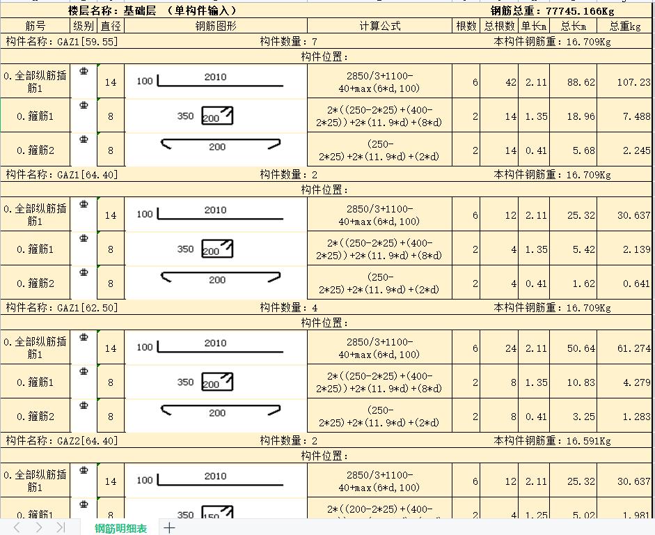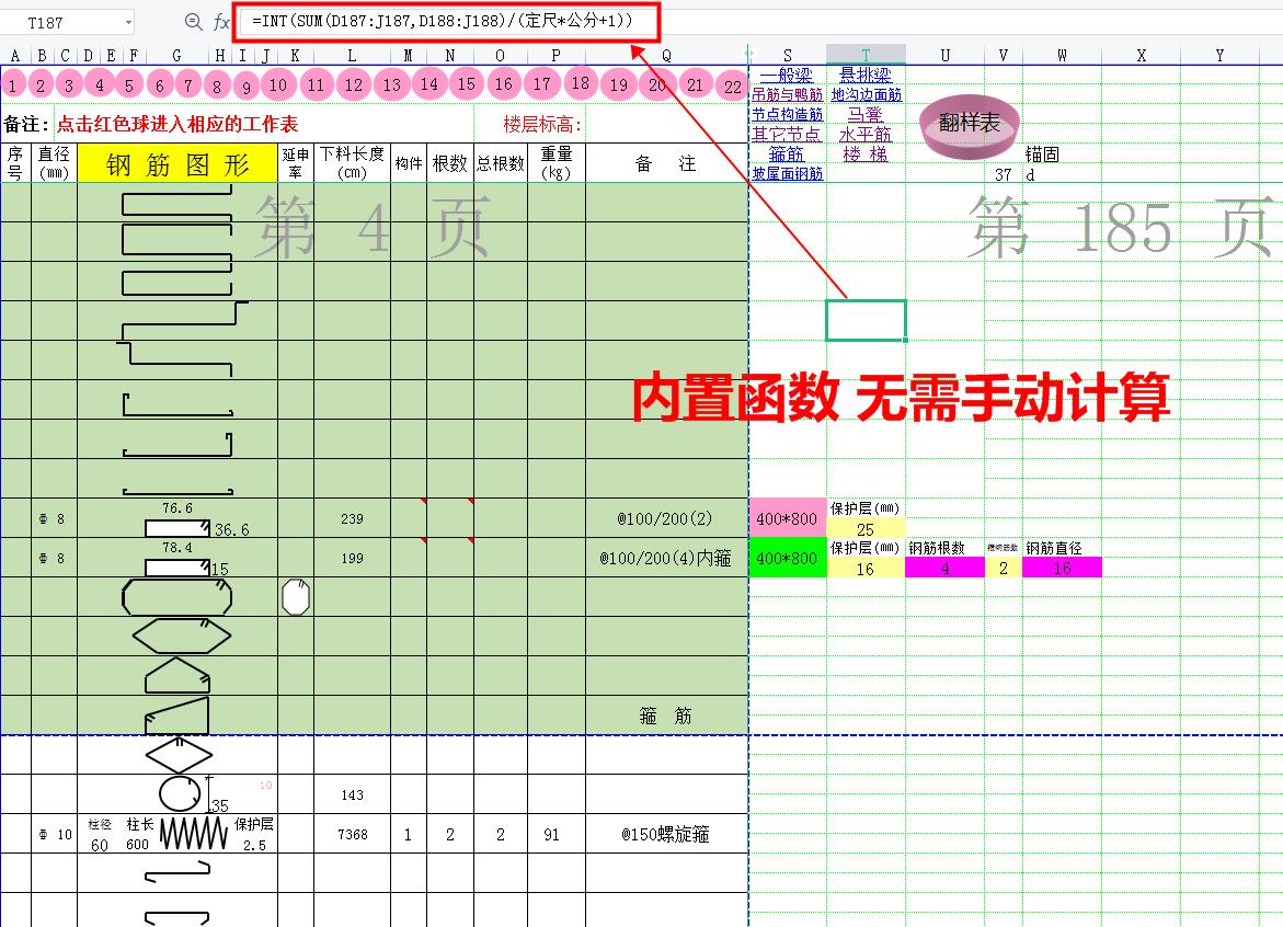 內(nèi)嵌公式,輸入?yún)?shù)即可得到結(jié)果,筋號(hào)、鋼筋圖形、計(jì)算公式等一目了然,完全不用擔(dān)心看不到計(jì)算過(guò)程,