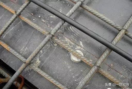 這是一個(gè)現(xiàn)場(chǎng)施工的照片,大家看他的板的下面一層鋼筋是直接放在模板上的。