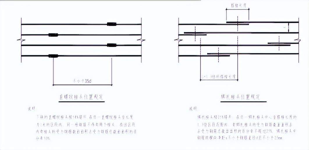 10.2搭接接頭相臨兩接頭應(yīng)錯(cuò)開1.3L(L為搭接長度);鐓粗直螺紋套筒連接的接頭位置應(yīng)錯(cuò)開35d(Φ25為875mm,Φ22為770mm)。