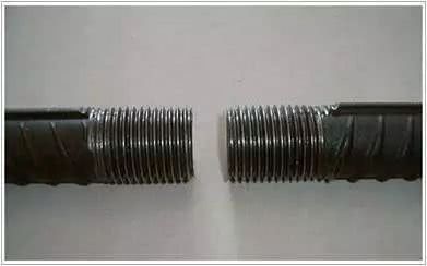 鋼筋直螺紋連接技術(shù)分為多種型式,其中剝肋滾壓直螺紋連接應(yīng)用最廣。其原理是將待連接鋼筋端部的縱肋和橫肋用切削的方法剝掉一部分,然后直接滾軋成普通直螺紋,用特制的直螺紋套筒連接起來,形成鋼筋的連接。
