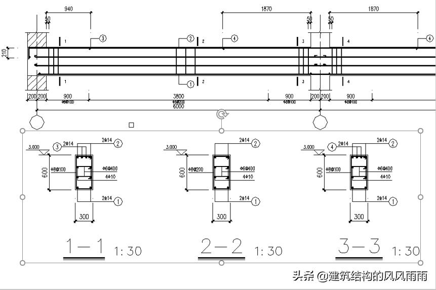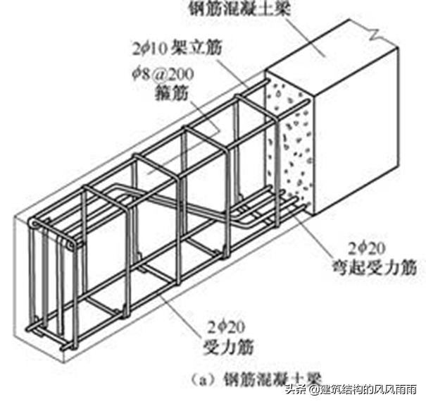 上部縱向鋼筋的數(shù)量由計算確定,但不少于2根;下部縱向鋼筋伸入支座的數(shù)量不應(yīng)少于2根,一般為3~4根。