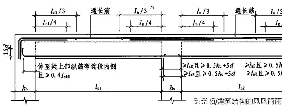 上部縱筋應(yīng)貫穿中間支座或中間節(jié)點(diǎn),按縱筋的截斷位置截斷。