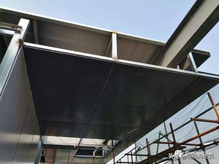 ▲懸挑的檐口板與鋼梁的連接節(jié)點(diǎn)