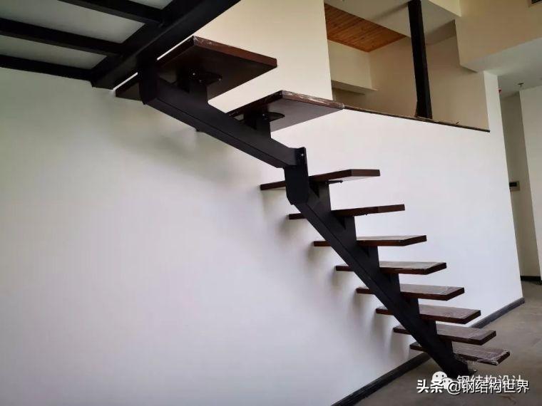 ▲樓梯上表面,花紋鋼板翻邊,平臺(tái)和踏步澆一層混凝土。