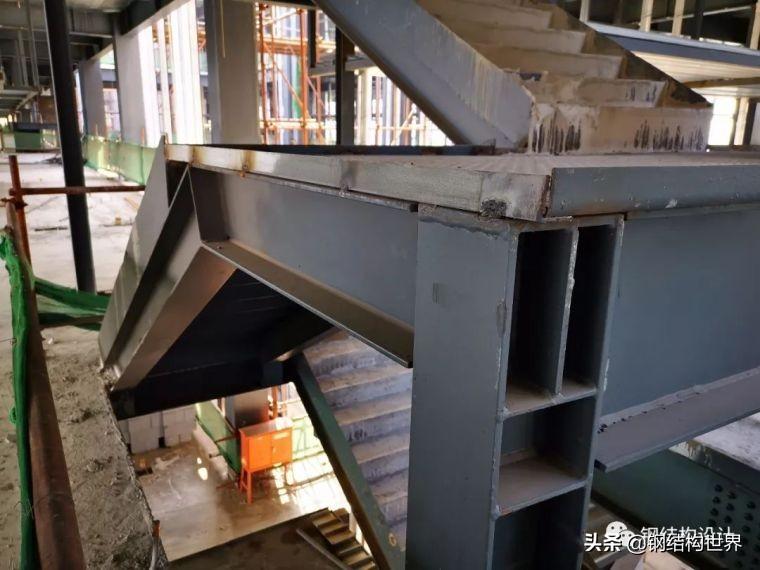 ▲采用了H型鋼梯梁,平臺(tái)板角鋼加密。