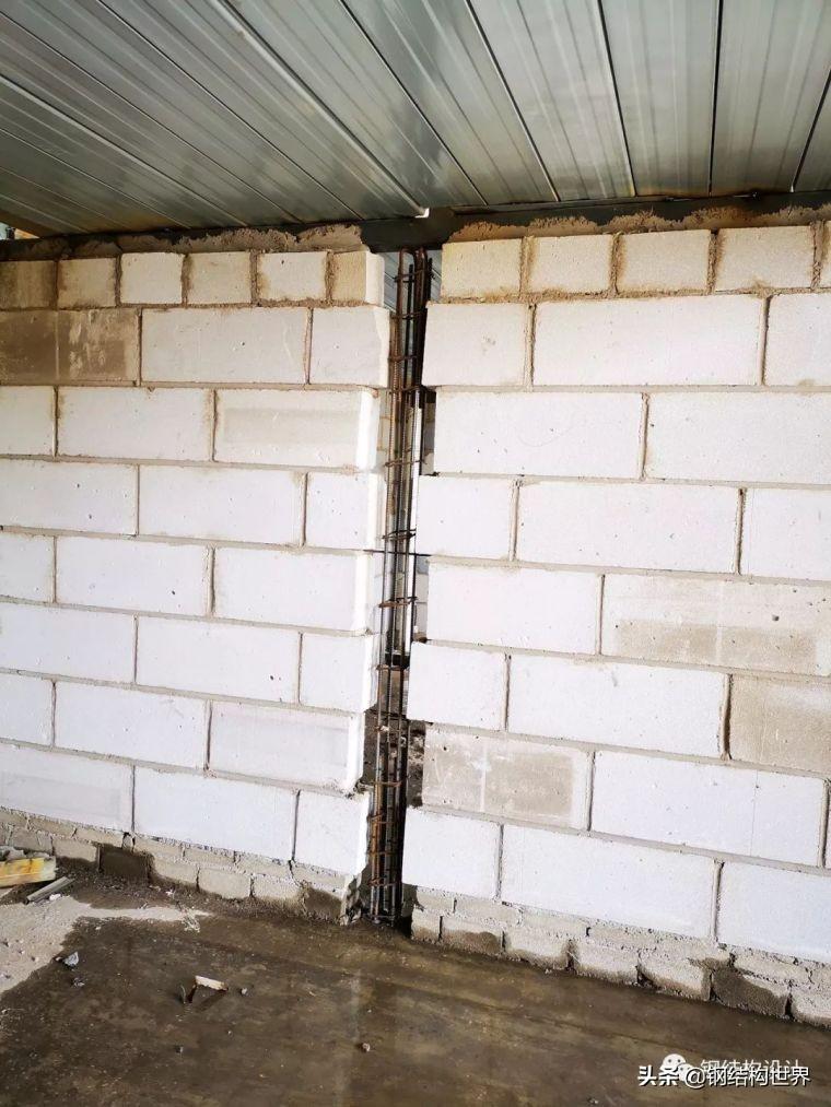 ▲夾層樓面下方的加氣混凝土砌塊墻,構(gòu)造柱的馬牙槎先退后進(jìn),底層三皮磚要采用水泥磚。