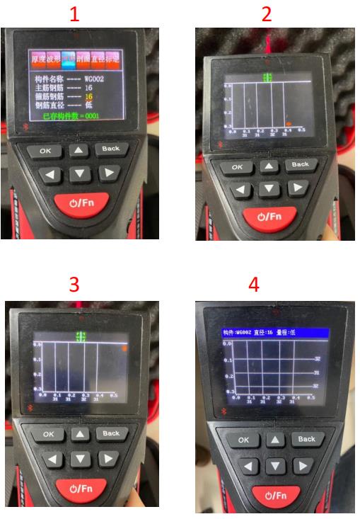 注意:當檢測出鋼筋直徑與設計值相差較大時應重新標定重復測量