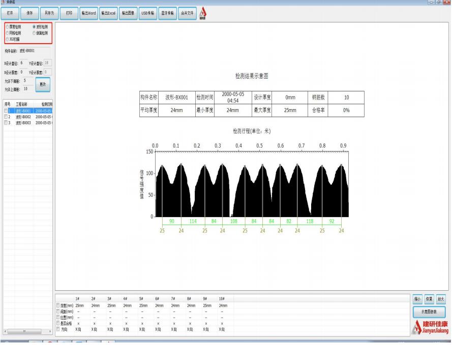 檢測結果直觀顯示(保護層厚度、鋼筋間距、鋼筋數(shù)量)