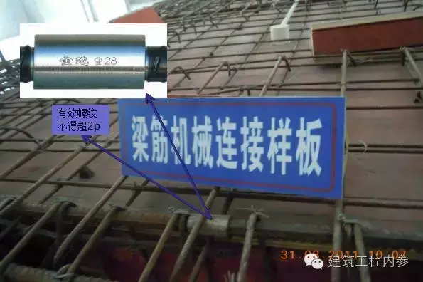 規(guī)范【JGJ2003-2004第6.3.3條】規(guī)定:鋼筋連接完畢后,標準型接頭連接套筒外應(yīng)有外露有效螺紋。且連接套筒單邊外露有效螺紋不得超2p(p-螺紋螺距)。