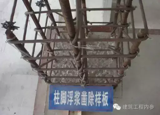 規(guī)范【GBJ134-90第4.2.10條 】規(guī)定:在柱腳施工縫澆筑砼前,應(yīng)將施工縫處砼表面鑿毛,清除雜物,沖洗干凈,保持濕潤;在施工縫表面宜鋪上一層水泥砂漿,其厚度宜為20 ~ 25mm,灰砂比宜為1:1 。