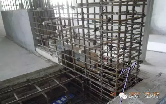 此剪力墻兩排鋼筋彎折方向、是錯誤的,應(yīng)按下圖示意方向彎折。