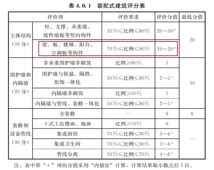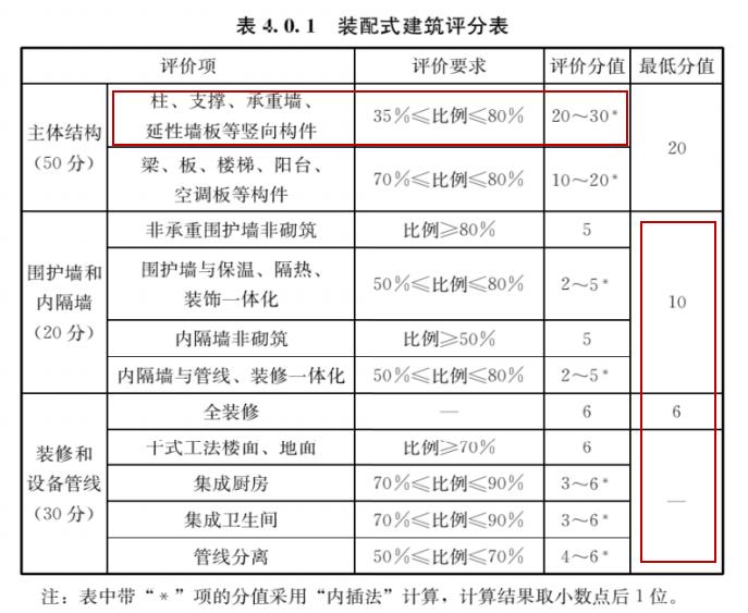 其中,國標(biāo)評價(jià)標(biāo)準(zhǔn)是采用單體裝配率作為計(jì)分原則,單體裝配率要求不低于50分,其中36分是固定項(xiàng)分值。根據(jù)裝配方案選擇的不同,對應(yīng)的混凝土預(yù)制率可在20%~30%左右浮動。