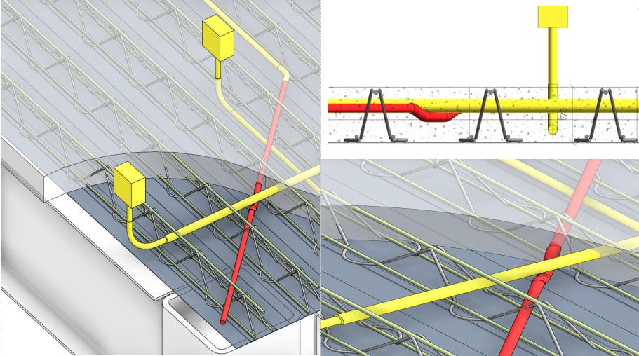 在項(xiàng)目實(shí)際建設(shè)過程中,常選用業(yè)內(nèi)認(rèn)可度高的鋼筋桁架樓承板,鋼筋桁架與底板通過電阻點(diǎn)焊連接成整體的組合承重板,目前已經(jīng)實(shí)現(xiàn)了機(jī)械化生產(chǎn)。它極大地提高樓板施工質(zhì)量,顯著加快施工進(jìn)度,保證施工安全。
