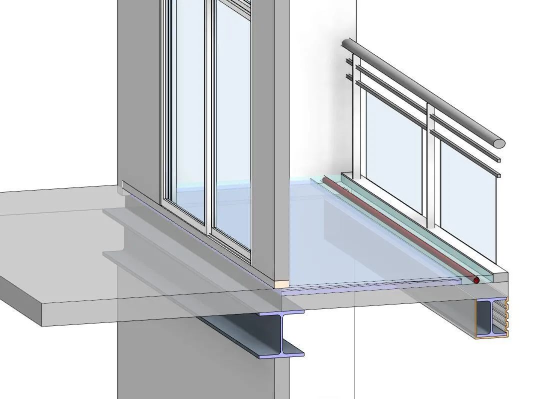 圖2 開敞式陽臺排水及鋼構(gòu)件防腐做法