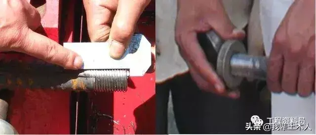 5)連接鋼筋的外露絲扣不應(yīng)大于1個(gè)螺距。接頭必須采用力矩扳手并根據(jù)鋼筋直徑大小調(diào)整力矩扳手所測(cè)定的力矩值。當(dāng)用力矩扳手扳動(dòng)直螺紋時(shí)聽到“咔咔”兩聲,則已達(dá)到規(guī)定值,合格;否則視為不合格。