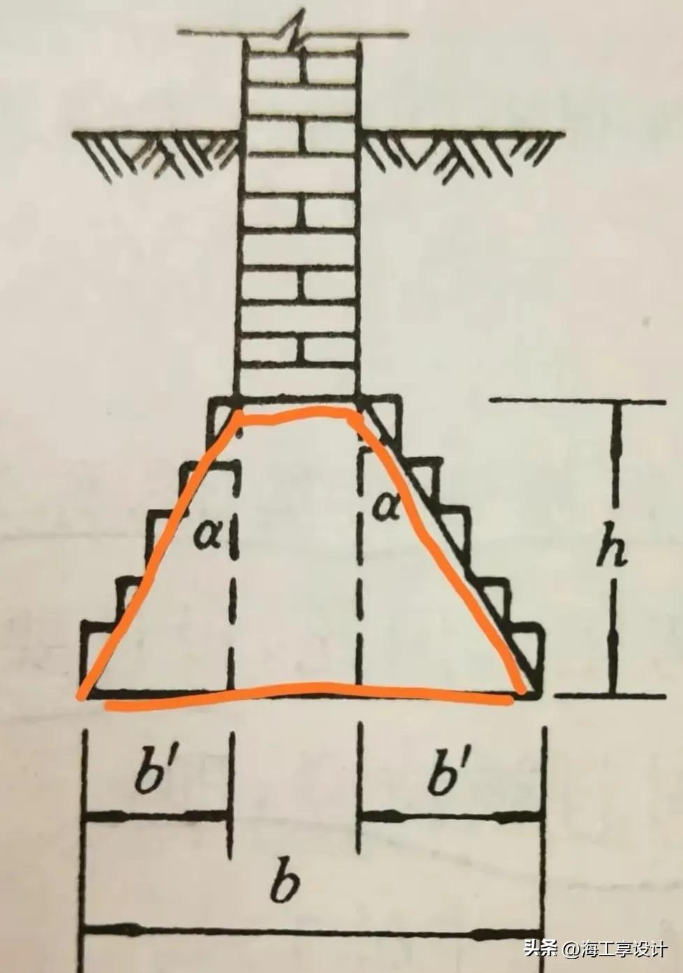 通過大放腳把荷載載傳給更大面積的地基上