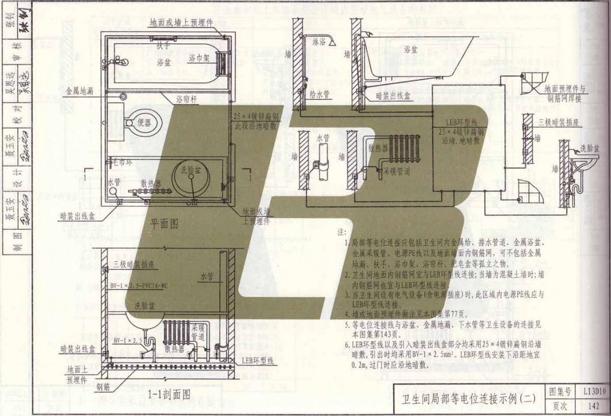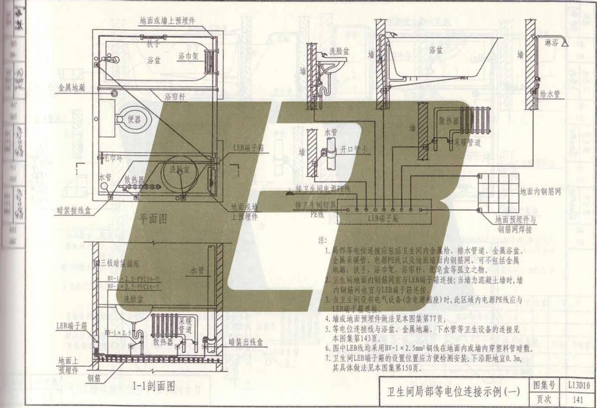 1.2、衛(wèi)生間等電位的做法(LEB),此做法圖集、圖紙標注過于籠統(tǒng)。在日常施工中重視程度不夠,往往忽略結算算法或者現場做不到規(guī)范。衛(wèi)生間等電位的做法有國標、省標兩種,具體施工時應該參照圖紙設計及標準圖集的做法,F主要理清做法的具體操作步驟及注意事項。衛(wèi)生間周圈圈梁鋼筋或者扁鋼焊接完畢引至就近引下線。有的圖紙設計明規(guī)定定使用衛(wèi)生間內鋼筋作為引下線(引下線及其他詳見以下),有的圖紙則不予標明。如果需要引至就近引下線的需要考慮焊接并測量長度作為計算依據。至于衛(wèi)生間內上下鋼筋網的連接方式問題,在當地還沒形成一致的看法。但是根據周邊縣市的實際做法并參照圖集來看,上下鋼筋網是需要與圈梁連接并形成整體的接地體的。至于如何焊接詳見后面的附圖。衛(wèi)生間等電位還會涉及衛(wèi)生間內照明、插座、金屬構件的重復接地事宜。主要規(guī)定地線剔槽的形制,出線的長度敷設方式、八六盒的安裝數量、無端子壓線的數量、接地扁鋼的長度等。實際做法如下,使用扁鋼的方法。扁鋼圍繞衛(wèi)生間圈梁一圈,并接入就近引下線柱筋(此處為簽證的要點)。在衛(wèi)生間內引出500預留給等電位盒。扁鋼與衛(wèi)生間鋼筋網、圈梁可靠連接。上下鋼筋網按照規(guī)范界定是需要焊接或者綁扎的。也應該計入結算(此疑點是結算爭議的焦點)。后續(xù)工作為參照圖集及圖紙的要求將照明地線、衛(wèi)生間插座地線可靠連接入等電位盒。如果衛(wèi)生間內有暖氣片、洗臉盆、淋浴等金屬構件需要剔槽、敷管穿線至等電位盒做到可靠接地。切記等電位盒沒有考慮接線端子,結算時需要套用無端子接線、或者有端子接線。