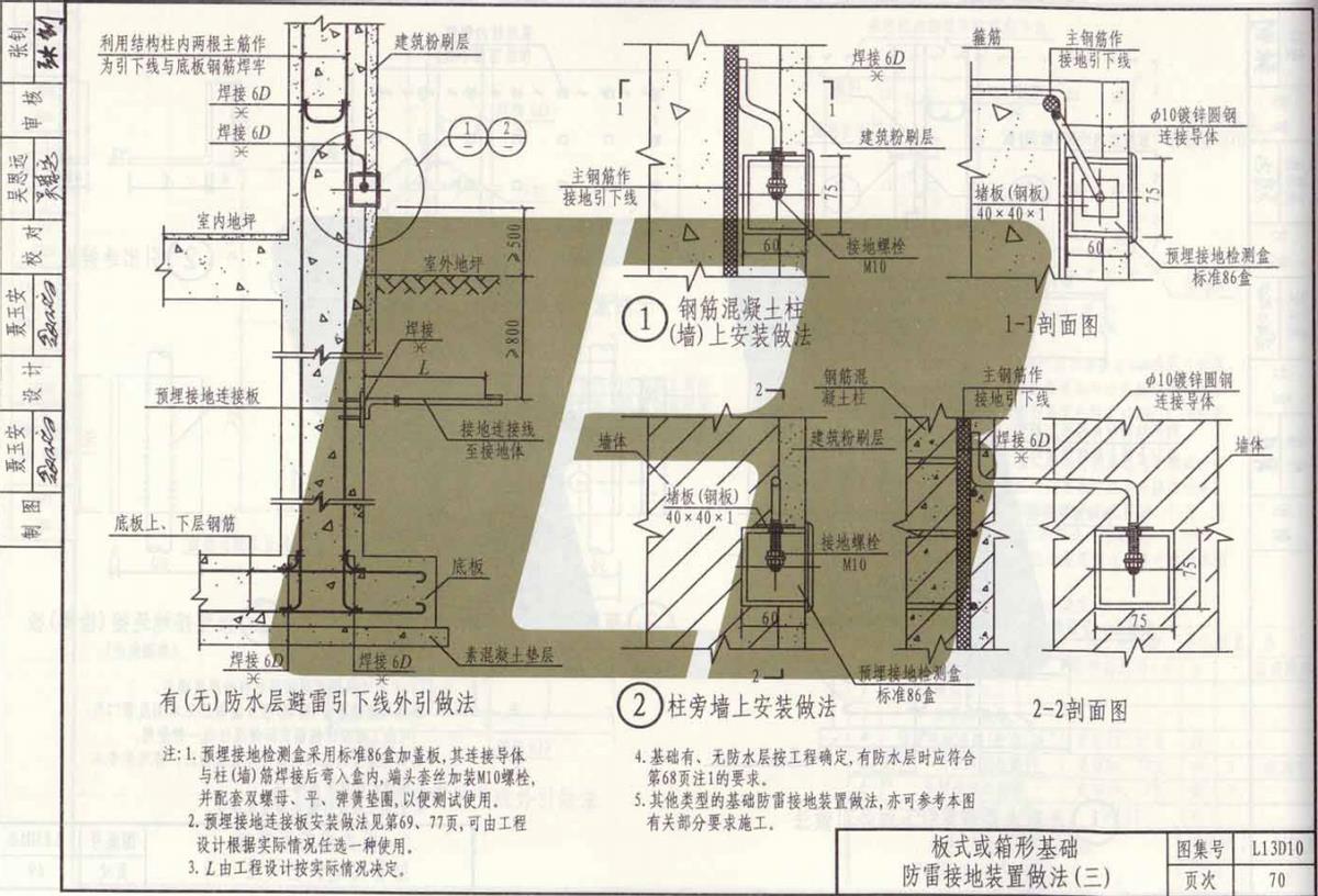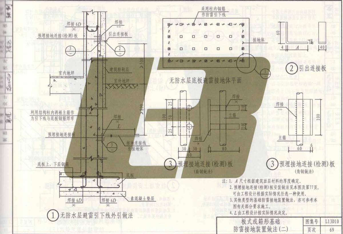 接地體、引下線及特殊接地要求。接地鋼筋與引上線連接有三個特殊部位需要慎重對待。在基礎底部引上線與基礎鋼筋的連接需要圈接一次。在到正負零后起500引上線圈接一次。在出屋面處引上線圈接一次。(具體參照圖集)。結算簽證時不能忘記。柱筋與基礎焊接時在生根處需要將引上柱筋圈接。是為了更可靠地保證連接的可靠性。引下線的連接方式?梢院附印⒔壴、卡接。在正負零上的測試板的作用是用于避雷電阻檢測、在接地電阻大于一歐姆時候連接獨立接地樁。依高密的地質條件看一般用不到獨立接地體。在電梯井、電井、地下變電所、配電間等內部都有接地要求。尤其是電井、電梯井、配電間中建筑中常見的接地要求的部位需要嚴格對待。電梯井中的接地一般由電梯廠家自行安裝。施工單位在施工時可以在電梯井中預留接地端子板電梯井中的鋼筋按照引下線做法施工,如此結算時候都可以計算。均壓環(huán)做法一般是二類建筑以上高度超過55米以上,每三層做均壓環(huán)。均壓環(huán)做法比較麻煩!尤其是窗戶的避雷連接是個長期的工作需要窗戶安裝班組配合。但是造價可觀!因此在后期的圖紙會審中符合上述條件的需要積極提出來。