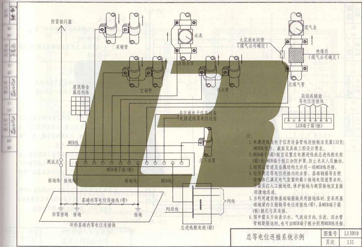 總等電位(MEB)做法,總等電位處涉及到從總箱中引出的接地線的開槽、敷管、接地線的壓接端子。欄桿、供熱管道、給排水管道、橋架等的接地跨接。使用單獨接地線或者扁鋼。一般在圖紙中只會粗略地提供示意圖。具體施工、結算時還要按照圖集規(guī)范進行計算。具體如下,總等電位需要連接單元門口、樓梯欄桿、進單元電纜橋架、線管、自來水、天然氣、暖氣、電箱外殼等金屬構件(如何連接詳見圖集)。連接主要用敷管穿BV-25以上雙色線或者40*4扁鋼。如果在前期沒有敷設扁鋼可以使用相應型號的線管剔槽敷設至相應位置。工作完畢隱蔽前需要做好記錄作為結算依據。