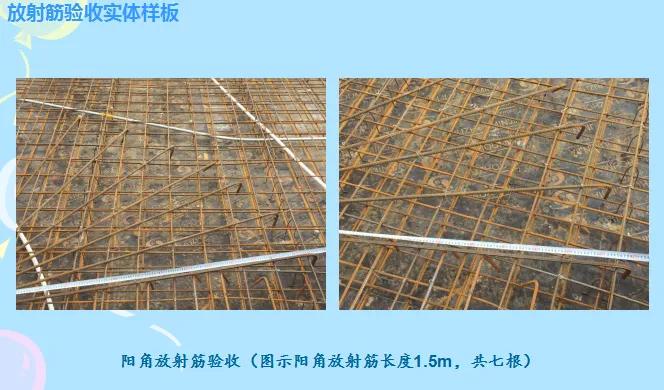 樣板設(shè)置應(yīng)具代表性可復(fù)制,可防治質(zhì)量通病的產(chǎn)生,如何設(shè)置體現(xiàn)項(xiàng)目質(zhì)量技術(shù)管理的態(tài)度和水平。鋼筋工程在大面積施工前按規(guī)定設(shè)置可視化施工樣板,樣板不拘形勢,可以是實(shí)體樣板加文字說明、項(xiàng)目第一批具代表性的鋼筋隱蔽的圖片加文字說明形成的PPT文件、示范觀摩工地的相同鋼筋構(gòu)造的圖片加文字說明形成的PPT文件等。---正確性、代表性、可操作性、指導(dǎo)性。鼓勵(lì)設(shè)置施工樣板工藝展示區(qū)或可視化交底視頻。