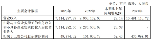 新鋼股份公布2023年年度報告,報告期實現(xiàn)營業(yè)收入711.43億元,同比下降28.14%;歸屬于上市公司股東的凈利潤4.98億元,同比下降52.43%。擬每10股派發(fā)現(xiàn)金紅利1.50元(含稅)。