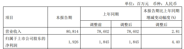 同日,公司發(fā)布2024年第一季度報(bào)告,一季度實(shí)現(xiàn)凈利潤19.26億元,同比增長4.4%。