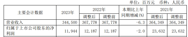 寶鋼股份4月26日公告,公司2023年實(shí)現(xiàn)營業(yè)收入3445億元,同比下降6.3%;實(shí)現(xiàn)凈利潤119.44億元,同比下降2%。
